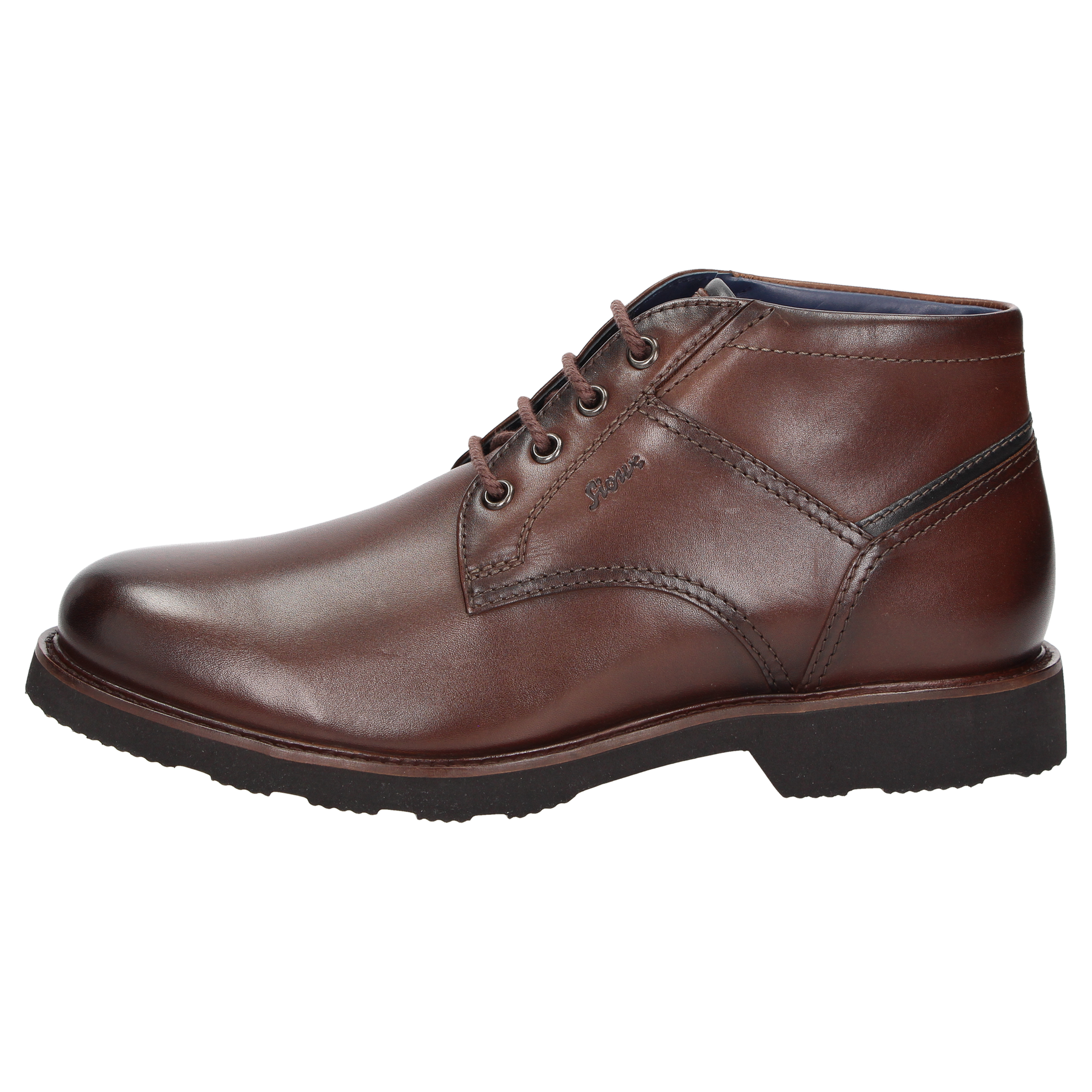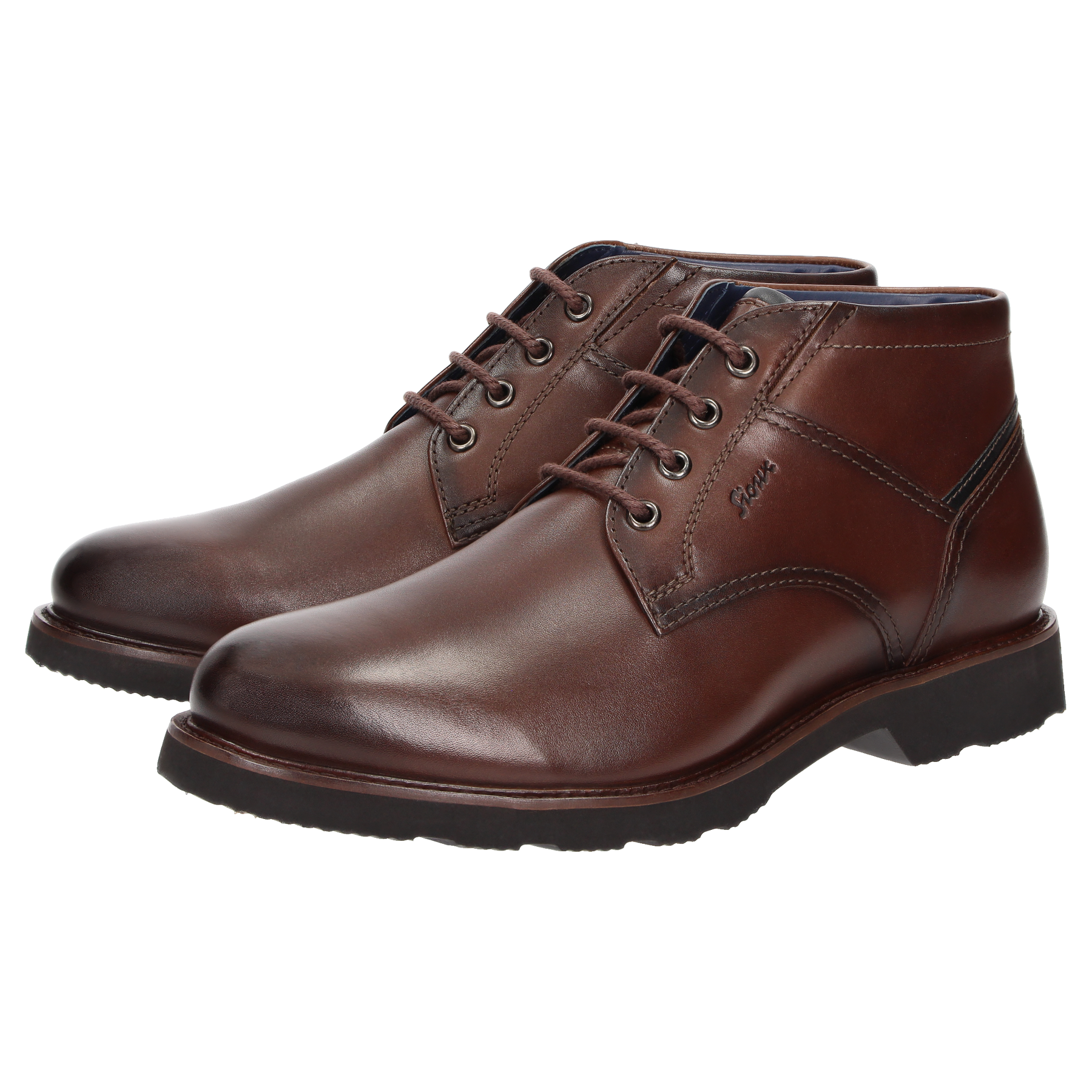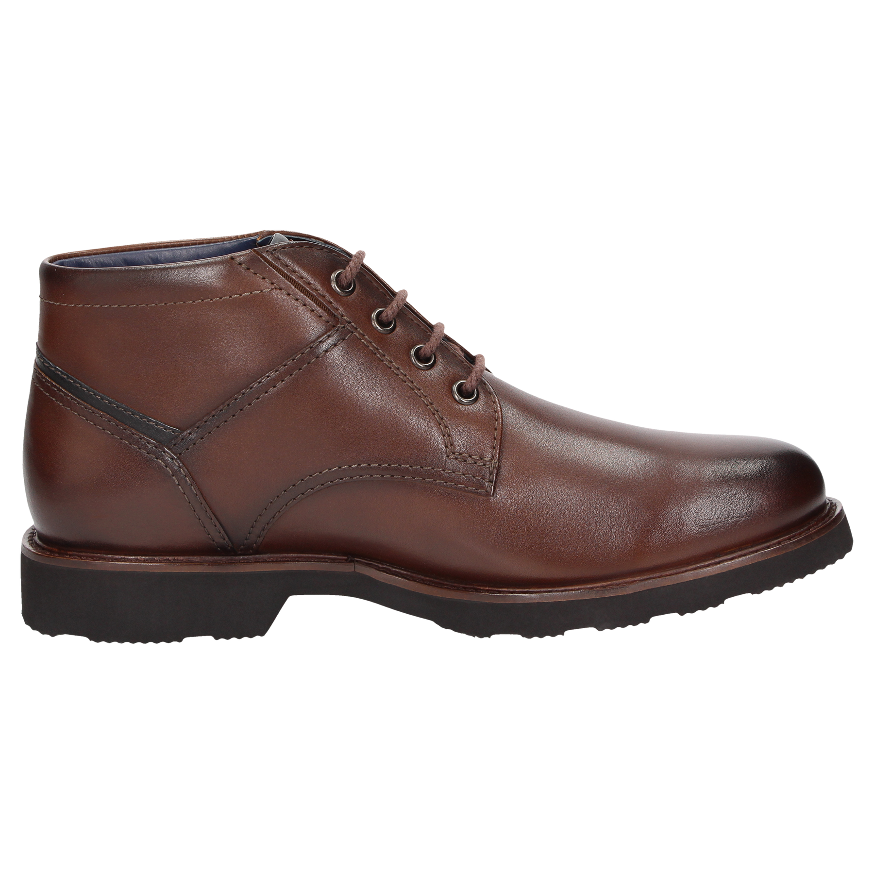Boots confort à lacets fabriquée en cuir de veau brillant et dotée d'une semelle intérieure amovible .semelle extérieure profilée en caoutchouc ,largeur H